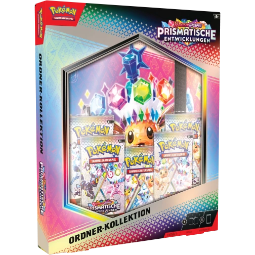 Genau wie ein Pokédex macht es ein Ordner einfach, den Überblick über deine Pokémon-Sammlung zu behalten! In diesem Ordner mit 9 Kartenfächern pro Seite kannst du bis zu 378 deiner Lieblingskarten aus dem Pokémon-Sammelkartenspiel zur Schau stellen. Dank 5 Boosterpacks aus der besonderen Erweiterung Karmesin & Purpur – Prismatische Entwicklungen kannst du sofort mit dem Füllen beginnen!